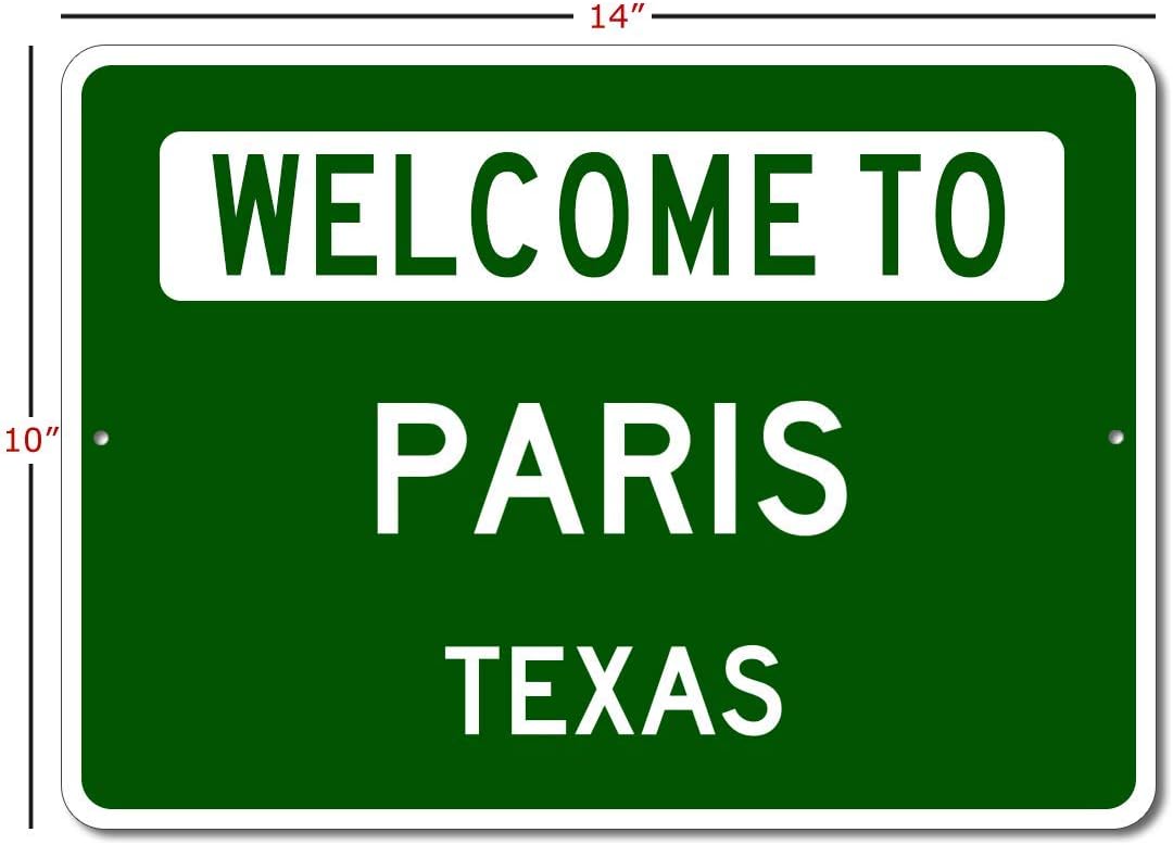 Amazon Com Paris Texas Welcome To Us City State Sign Metal Street Sign Man Cave Wall Decor Personalized Gift Idea Us City Welcome Sign Made In Usa 10x14 Inches Home