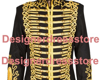 Hommes Handmade Or Broderie Noir Militaire Napoleon Crochet Veste 100 Coton Ebay