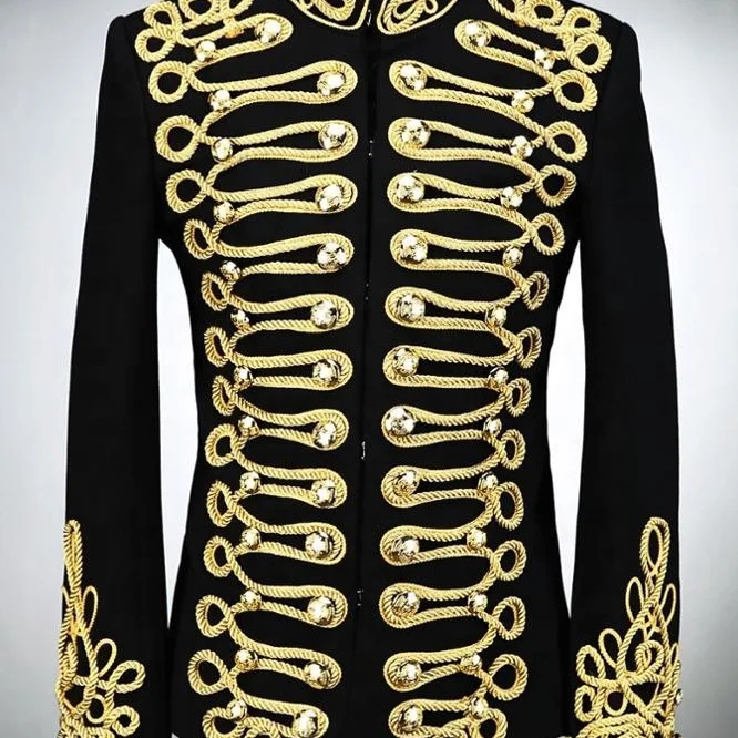Napoleon Chic Noir Automne Luxe Doree Exterieure Corde Deco Napoleon Veste Buy Cotton Blend Hussar Civil War Uniforms Jackets Made Of 100 Cotton Gold Rope Reproduction Hussar Button Fastening Black Gold Brown Faux