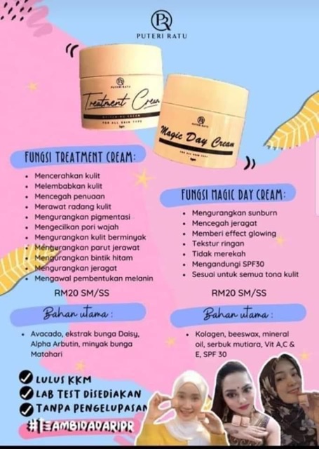 🌸puteri ratu treatment cream//magic day cream//birdnest 💯 original hq 👆🏻puteri ratu treatment cream sabun kuning macskinz serum mackinz 100% original macskinz sabun soap mackinz serum original hq 𝗦𝗘𝗥𝗨𝗠 𝗠𝗔𝗖𝗞𝗜𝗡𝗭. Menurut laporan yang ditulis pada laman Facebook mereka, ubat tidak berdaftar amat tidak digalakkan penggunaannya kerana biasanya produkproduk seperti ini tidak pernah di analisa oleh manamana pihak, terutamanya KKM. Puteri Ratu – Magic Day Cream;.