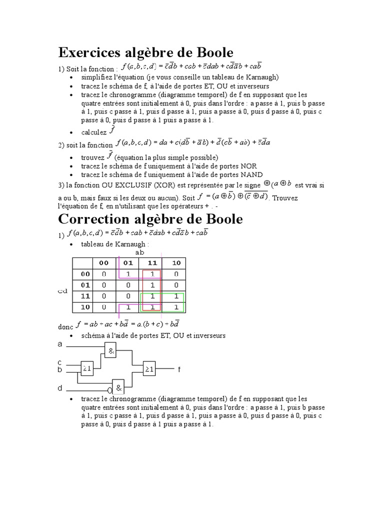 Exercices Algc3a8bre De Boole Decimal Code Binaire Mathematiques