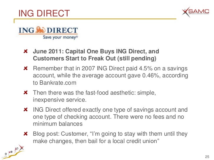 The ING Direct Cafe is essentially a front for Dutch financial giant ING Group's banking operation Those freshfaced young adults behind the counter not only will serve you coffee, they'll happily. Vermeulen said that US customers have more than $ billion worth of online banking accounts with ING Direct Unlike many other US banks, like Citibank (C, Fortune 500) and Bank of America. Boston, MA, March 07, 18 () The Web Marketing Association is pleased to announce the call for entries for its 22nd annual international WebAward competitionThe WebAwards are the standards.