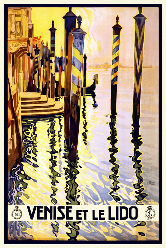 Vintage Art Deco 19s Travel Poster Venice Italy Gondola Venise Lido Retro Ebay