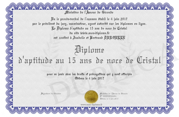 Diplome D Aptitude Au 15 Ans De Noce De Cristal