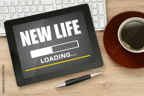 Tablet Computer With The Message New Life And A Loading Bar On Stock Photo Alamy