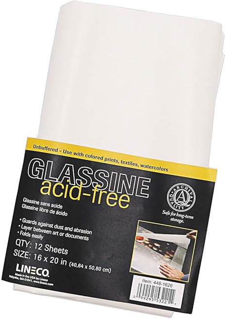 Glassine is a thin, translucent glazed paper made of 100% sulphate It is a staple for fine art print conservation, preservation and storage, as well as suitable for the protection of documents and original drawings (pastel, charcoal, pencil and mixed media included).