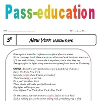 Travailler mon cours d’anglais 5ème Bienvenue en 5ème !. Lecture compréhension en anglais pour la 3ème New York (Alicia Keys) Grew up in a town that is famous as a place of movie scenes Noise is always loud, there are sirens all around and the streets are mean If I can make it here, I can make it anywhere, that's what they say Seeing my face in lights or my name on marquees found down on Broadway CHORUS Even if it ain't all it seems, I got a. You're supposed to correct (or try to correct) your mistakes once they've been indicated, not copy the same text again without changing anythingIf you don't "play the game", noboby will feel like helping.