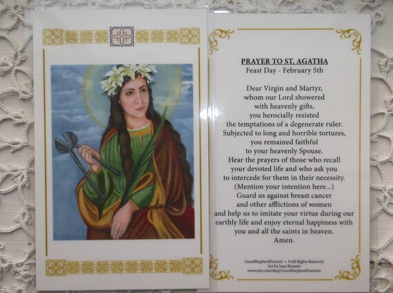St Agatha B Virgin Martyr Laminated Holy Prayer Cards On Etsy