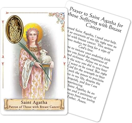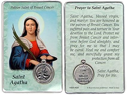 Amazon Com Saint Agatha Patron Of Those With Breast Cancer Prayer Card With Heat Sealed Medal Health Personal Care