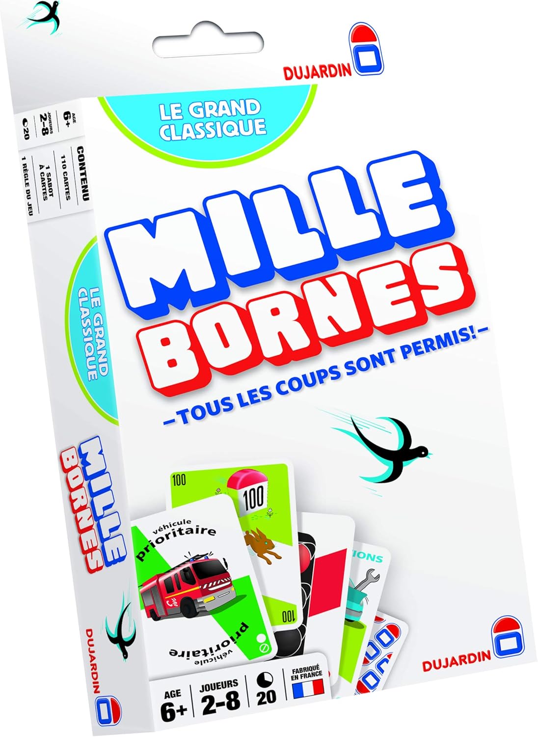 Classique parmi les classiques, le jeu « Mille Bornes » est, depuis 1954, le jeu français le plus vendu dans le monde Inspiré des courses automobiles, le jeu a pour but d’être le premier à poser des cartes pour faire exactement 1 000 bornes (c’est à dire 1 000 kilomètres), tout en ayant réussi à poser des parades contre les attaques des adversaires. Le Mille Bornes, le jeu de notre enfance Jeu de cartes édité par Dujardin, Le Mille Borne est un jeu de stratégie et de chance qui se joue à partir de 7 ans, pour une partie de 30 minutes de 2 à 6 joueur·ses En 19, Le Mille Bornes fête ses 65 ans et revêt un style Retro Vintage dans une version Collector pour l’occasion. Mille Bornes fan Fast like a duck!.
