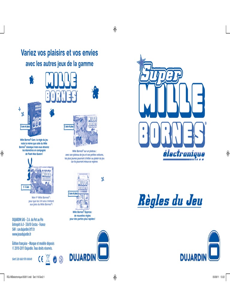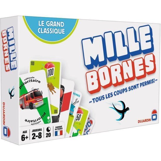 Mille Bornes is the classic card game of crosscountry racing Keep a green light handy in case you get stopped and play a tire puncture on your opponent to keep him from getting ahead Protect yourself with safety cards, and save one for the classic Coup Fourré. 30 sept 15 Découvrez le tableau "Vintage Mille Bornes" de Jeux Dujardin sur Voir plus d'idées sur le thème Souvenirs d'enfance, Jeux, Jeux de société. Mille Bornes Sur Un Plateau achat en ligne au meilleur prix sur ELeclerc Retrait gratuit dans de 700 magasins.