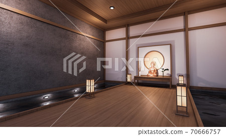The Hallway Like Japanese Room Has A Side Pool Stock Illustration