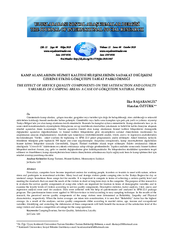 Pdf An Exploratory Study Of Factors Influencing Campers Level Of Loyalty To Camping Sites In The Tourism Industry