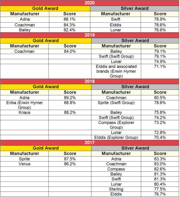 Caravan Owner Satisfaction Awards The Camping And Caravanning Club