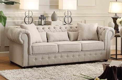 Hefx Leonora Chesterfield Bouton Touffete Avec Bras Roule En Tissu Neutre Salon Canape Anglais Loveseat Neutral Light Grey Amazon Fr Cuisine Maison