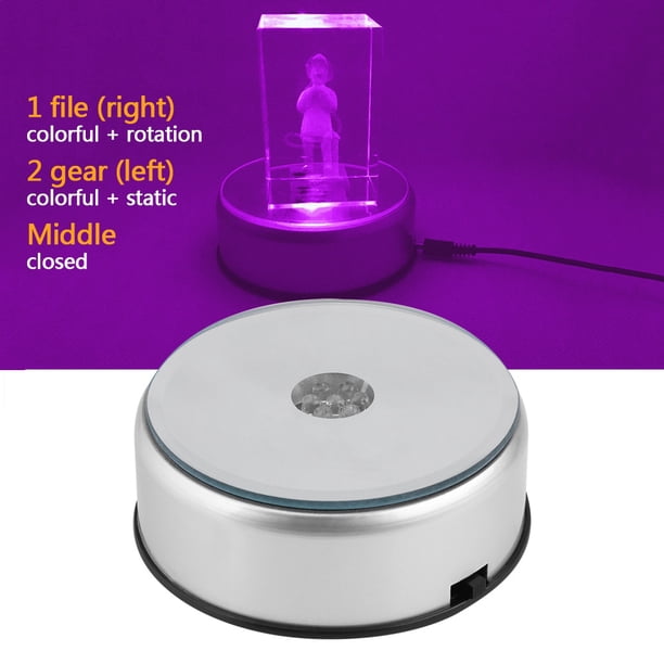 Kritne Led Display Holder Led Display Base Led Colorful Light Rotating Crystal Display Base Stand Holder With Ac Us Adapter Silver Walmart Com Walmart Com