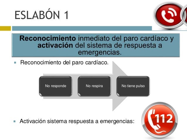 Un documento de la Fundación Española del corazón nos recuerda la cadena de supervivencia Llamar al 112, hacer el masaje cardíaco, usar un desfibrilador y esperar a la ambulancia ¿Qué hacer en caso de una parada cardiorespiratoria?. La cadena de supervivencia es un factor clave para salvar vidas Descubre más Cómo reconocer las diferencias entre un infarto, un paro cardíaco y un ictus Desfibrilación precoz y cuidados posteriores Mientras se realizan esas acciones, se le debe pedir a los presentes que localicen un desfibrilador. La cadena de supervivencia es el conjunto de procesos que deben realizarse a una persona en parada cardiaca, de forma ordenada, consecutiva y en un periodo de tiempo lo más breve posible Consta de cuatro eslabones, de los cuales el primero consiste en el reconocimiento de la parada cardiaca y la activación precoz de los servicios de.