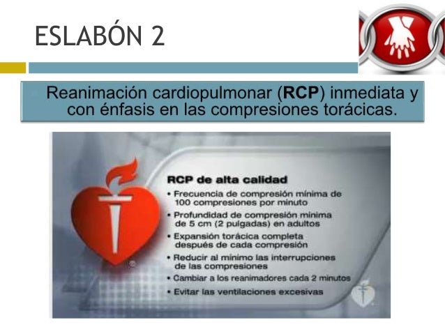 El conjunto de acciones y pasos vitales que unen a la víctima de un infarto con su supervivencia es lo que se conoce como cadena de supervivencia Prevenir o reconocer el paro cardíaco, ganar tiempo aplicando una correcta maniobra de reanimación cardiorrespiratoria (RCP), recuperar el latido cardiaco y recobrar la calidad de vida, son los. Sindicatos y empresas enfilan un acuerdo negociado para alcanzar la estabilidad en. La Cadena de Supervivencia es el conjunto de acciones sucesivas y coordinadas que permite salvar la vida (y mejorar la calidad de la sobrevida) de la persona que es víctima de una emergencia cardiorrespiratoria Para que esta cadena sea eficaz, se requiere de eslabones sólidos (acciones adecuadas) unidos con firmeza (acciones inmediatas y.