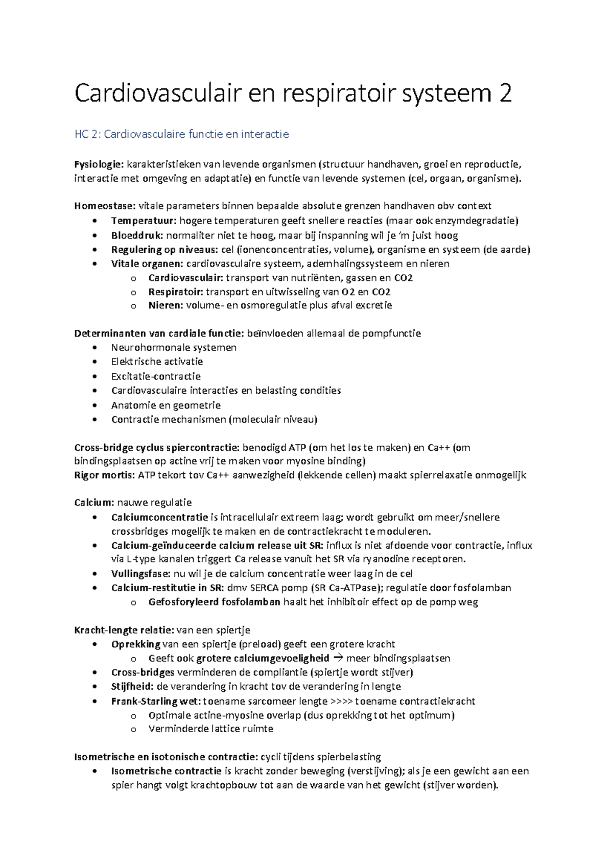 Cardiovasculair En Respiratoir Systeem 2 Studeersnel