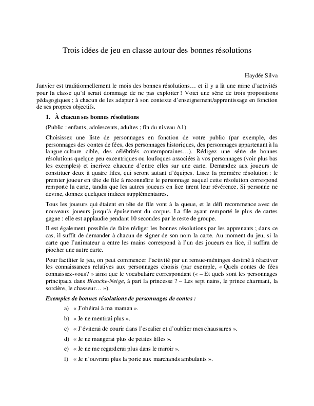 Pdf Trois Idees De Jeu En Classe Autour Des Bonnes Resolutions Haydee Silva Academia Edu