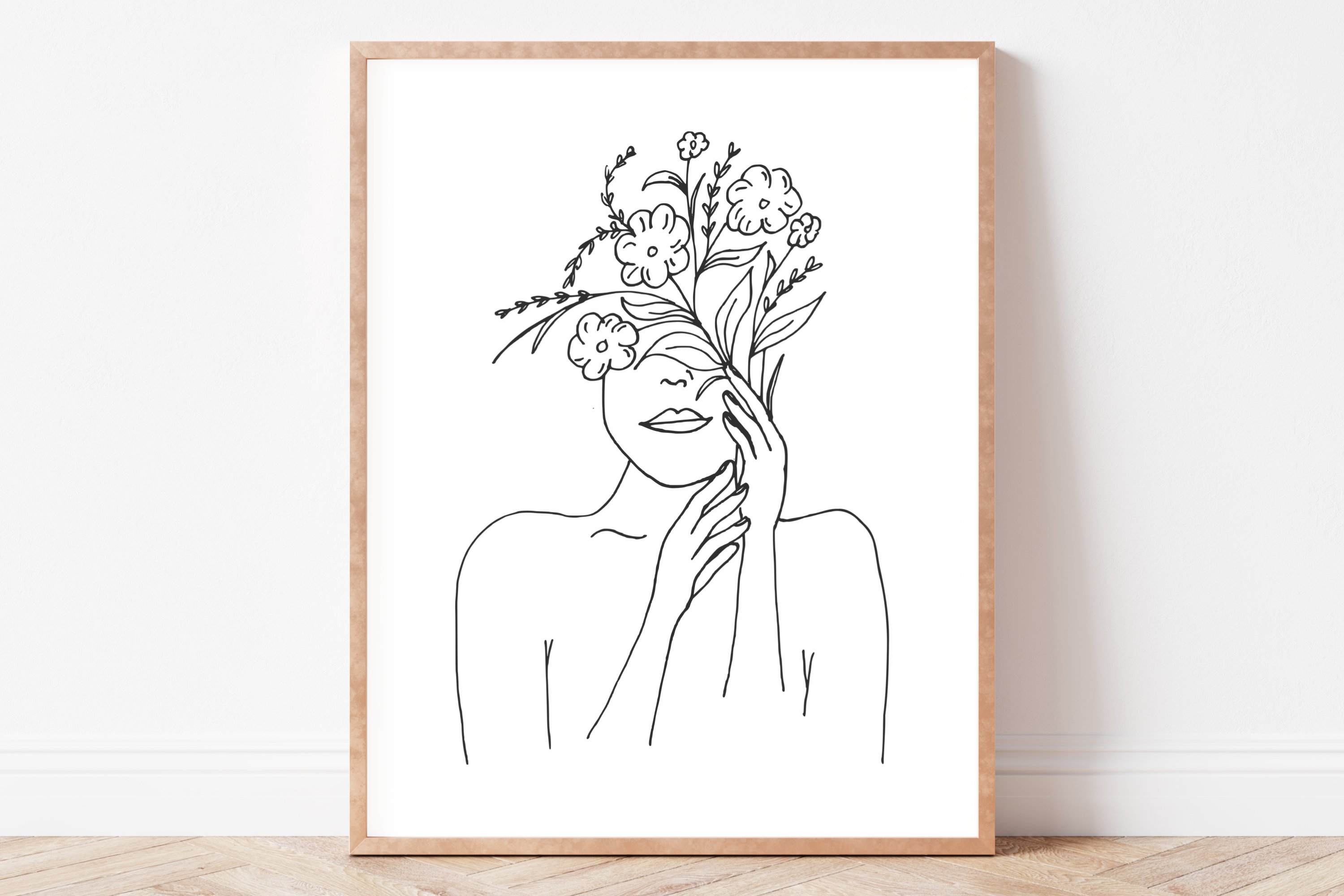 Digital Single Line Art Print Woman With Flowers Female Line Art Minimalist Wall Art Head Of Flowers Art Print Flower Woman Line Art Art Board Print By Onelineprint Redbubble