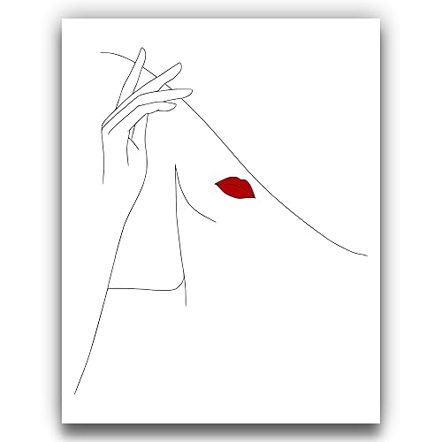 Amazon Com Abstract Woman One Line Fashion Silhouette With Red Lips 11x14 Unframed Black And White Art Print Of Nordic Modern Contemporary Female Form Line Drawing Wall Decor Handmade