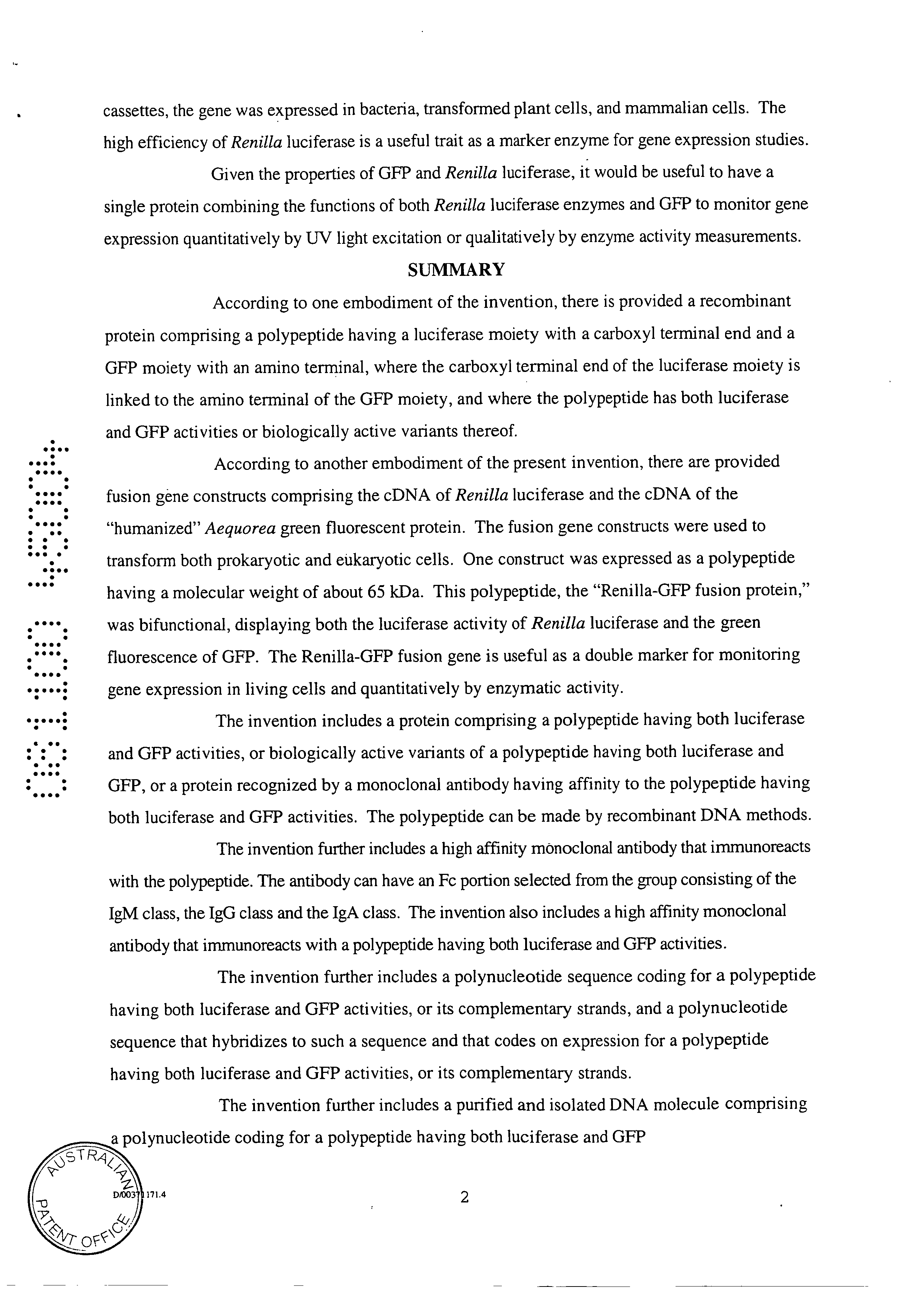 Au B2 Renilla Luciferase And Green Fluorescent Protein Fusion Genes The Lens Free Open Patent And Scholarly Search