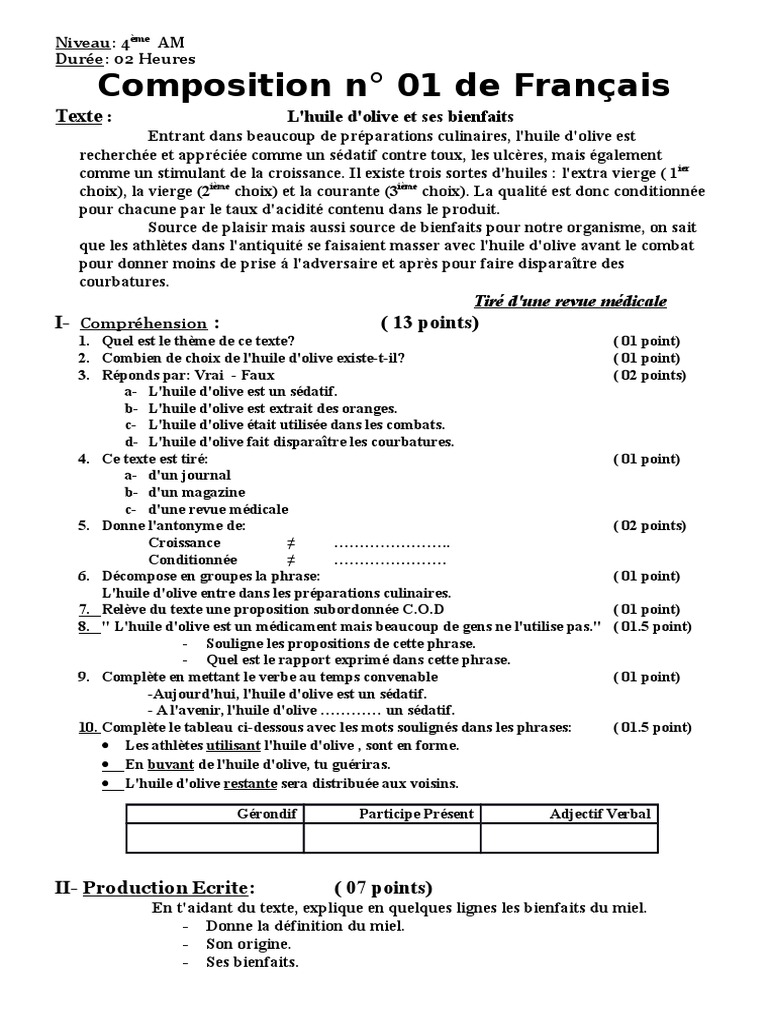 4eme Annee Moyenne Sujets Examens Francais Pdf
