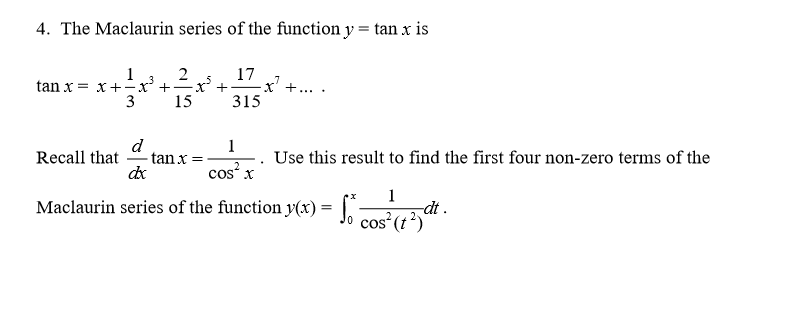 Solved The Maclaurin Series Of The Function Y Tan X Is Chegg Com