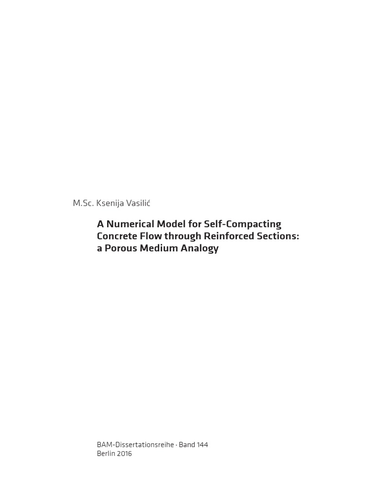 A Numerical Model For Self Compacting Concrete Flow Through Reinforced Sections A Porous Medium Rheology Fluid Dynamics