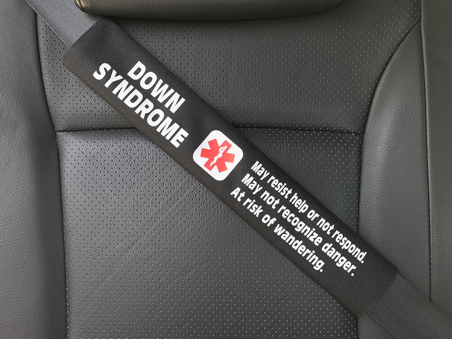 Amazon Com Down Syndrome Medical Alert Seat Belt Cover Black Health Personal Care