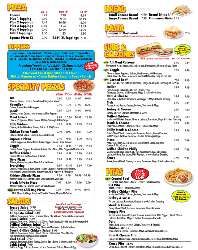 Krazy Pizza Pasta Salads Subs Menu