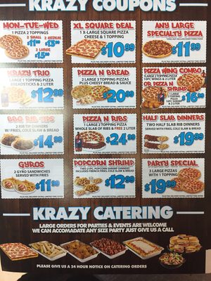 Krazy Karls Pizza, known for superb value for money, makes onestopshopping simple and affordable Enjoy best price with those handpicked coupons and deals for krazykarlspizzacom It's time to save!.