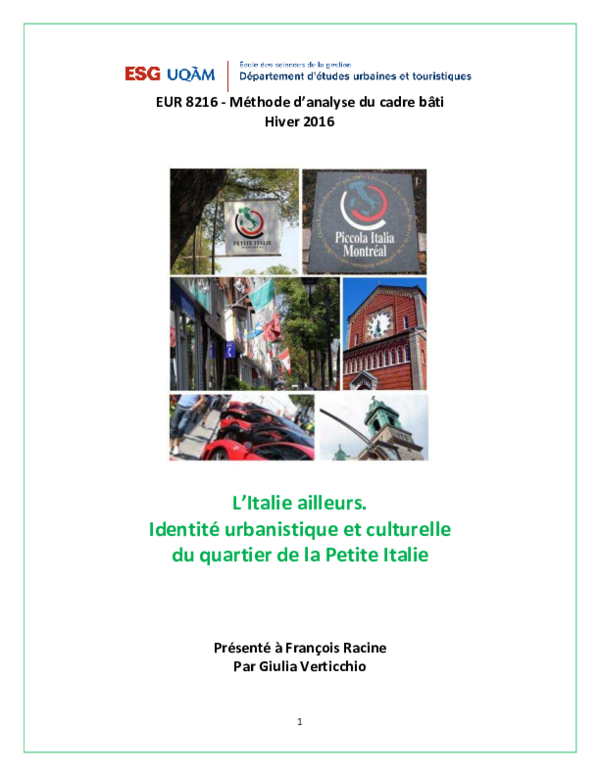 Pdf L Italie Ailleurs Identite Urbanistique Et Culturelle Du Quartier De La Petite Italie Giulia Verticchio Academia Edu
