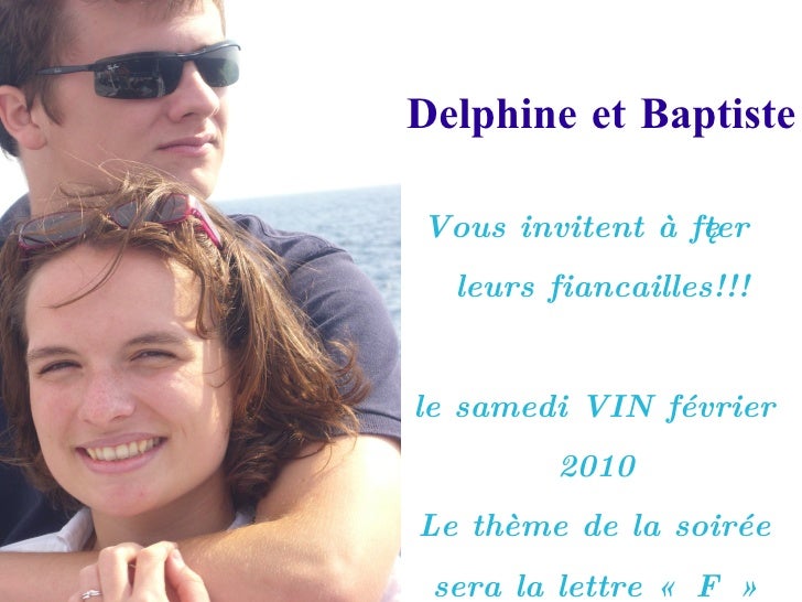 Wow your friends and family with a handdesigned personal invite for your next gettogether From birthday parties to baby showers to weddings any invitation can be customized just the way you want it Imagine your guests’ faces when they open the envelope to a beautiful. TEXTE INVITATION FIANCAILLE Texte invitation fiançailles Texte 1 Nous vous informons, avec le plaisir de ceux qui choisissent le même chemin, de nos fiançailles le XXXXXX dans un endroit qui respire toujours le printemps Et nous vous embrassons très fort, Texte 2 C'est avec joie que nous vous convions. Apparues au MoyenAge, les fiançailles n'existent pas du point de vue juridique et peuvent être rompues à tout moment Elles sont avant tout une promesse morale des amoureux de s'épouser dans l'année qui suit Bien qu'elles soient informelles, les fiançailles restent pour certains couples une tradition très importante qu'ils souhaitent partager avec leurs proches et formaliser par un repas.