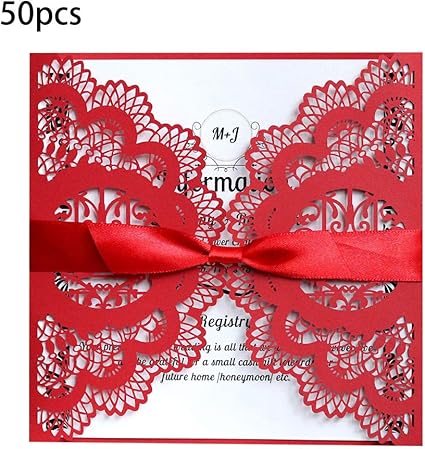Kuvuiuee Lot De 50 Cartes D Invitation Pour Mariage Et Fiancailles 6 6 In Rouge Amazon Fr Fournitures De Bureau