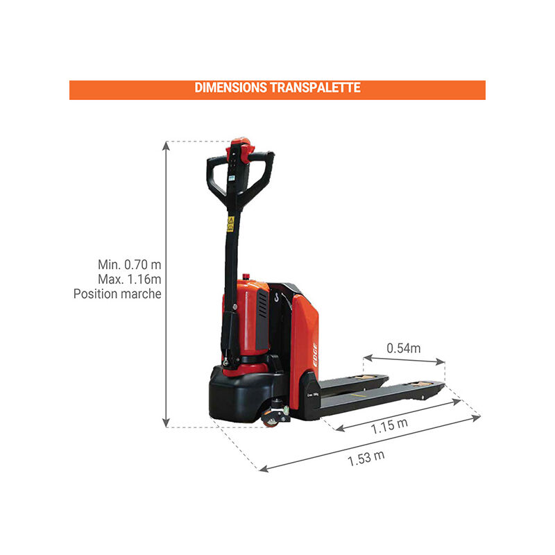 Ce transpalette électrique est un produit exceptionnelle de cette catégorie Il pèse 0 kg et dispose dune capacité de charge de 1500 kg La batterie dispose dune tension de 24 V/Ah dune capacité de 65 Ah et peut être rechargée à laide du chargeur intégré à toute prise 2 volts ordinaire. Demandez ou Proposez une location entre voisins Publiez votre annonce de TRANSPALETTE pour recevoir des offres Rejoignez le réseau d'entraide Kiwiiz !. Voir plus d'idées sur le thème produits, transpalette, chariot de manutention.