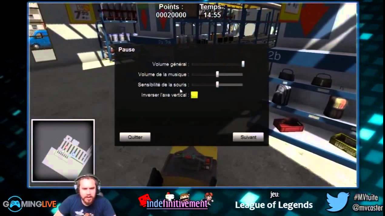 Un homme utilise un transpalette électrique dans un entrepôt pour retirer une palette de marchandise mais se retrouve bloqué au moment de reculer En forçant sur la marche arrière, la grille de protection du transpalette fait sauter une barre métallique de l'étagère qui percute alors violemment la tête du manutentionnaire Sacré Régis !.