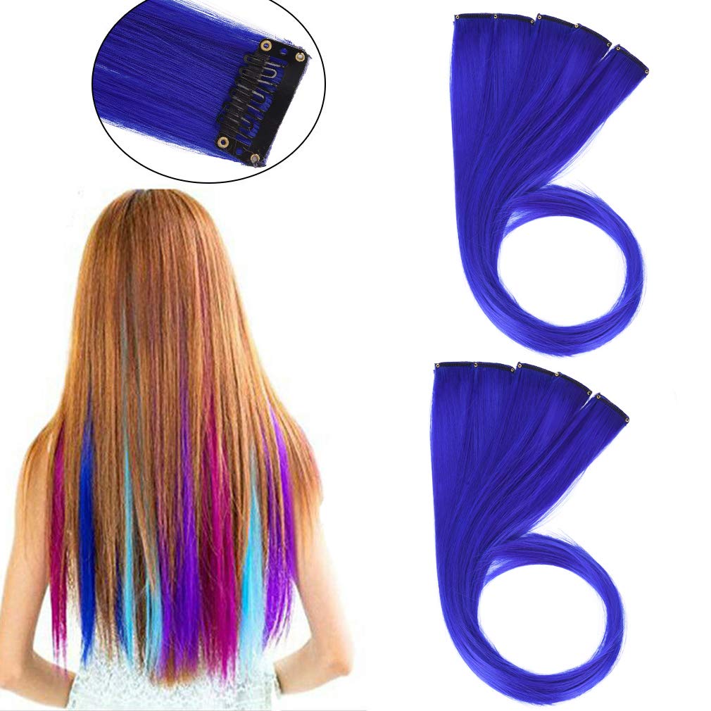 Amazon Com Seikea Clip In Hair Color Party Hair Extension Highlight Colorful Girl Kids Straight Hairpiece Blue Beauty