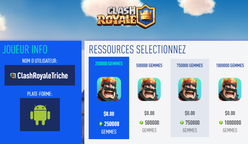 RoyclashCom Gemmes Grtuit Clash Royale;. Free Clash Royale Gems Generator Online No Survey Actually WorksClash Royale® Free Gems and Gold Cheats GeneratorNo Survey vErifiCatioN Are you searching an easy method to get free Gems for the brand new game Clash Royale?. May 8, Welcome to the Arena!.