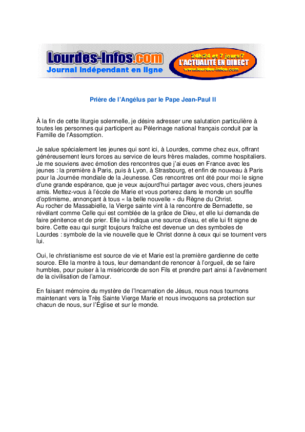 Pdf Priere De L Angelus Par Le Pape Jean Paul Ii Yannick Farrath Nd Academia Edu
