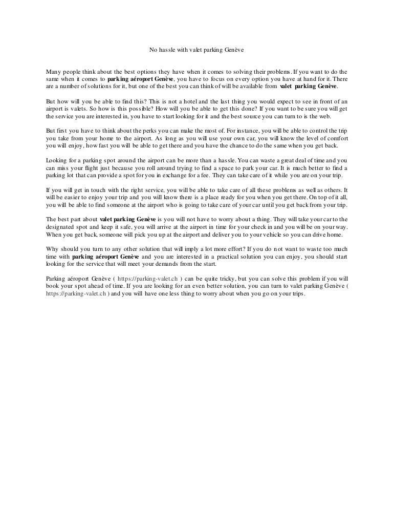 Located on the famous Rue du Rhône, the most luxurious shopping street in Geneva, the fivestar Hotel Metropole Geneve overlooking the lake, is only a short walk from the Jet d’eau, the Old Town and right next to the business district. PARKING VALET Discount Car Park (External) (26) 138 route de Vernier, 1214 Vernier APARTHOTEL ADAGIO GENÈVE SAINTGENISPOUILLY Hotel Car Park (External) (10) 67 Avenue du Mont Blanc, Thoiry Secure hotel parking 40 minutes from GenevaCointrin airport Transfer by public bus,. The deal with valet parking genève is that it saves you a lot of time and trouble Just think about how simple it is to just hand over the keys to your car and continue with your journey Now, the best part about relying on the right private parking lot is that they will have their own shuttle that will take you to the airport.