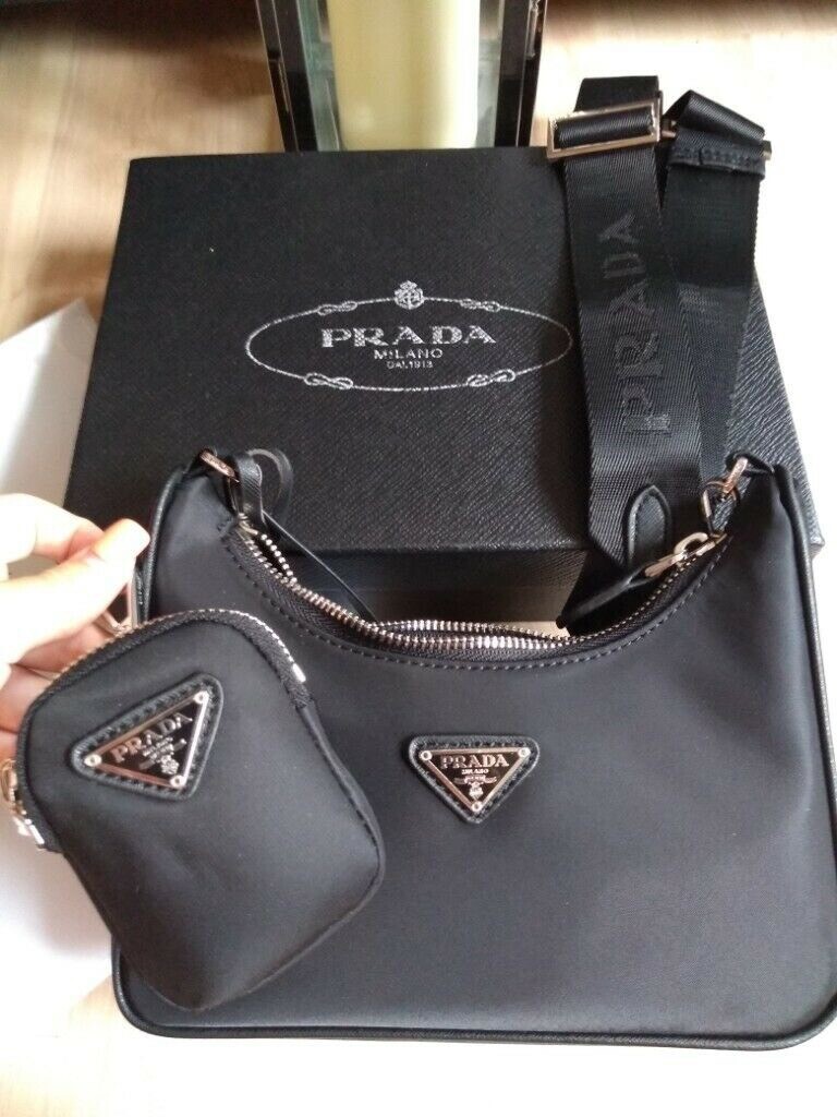 Authentic Prada Nylon and Leather Shoulder Bag with dustbag and Papers Shoulder strap can be made smaller or larger Side buckles can strap tighter if wanted One inside zip pocket Beautiful inside and out It is in excellent condition Looks new Shipped with USPS Priority Mail Please let me know if you’d like more pictures or information. Brand new and authentic This Prada handbag comes with authenticity cards and a Prada dust bag Currently unavailable We don't know when or if this item will be back in stock Share Have one to sell?. #2 Oct 24, 12.