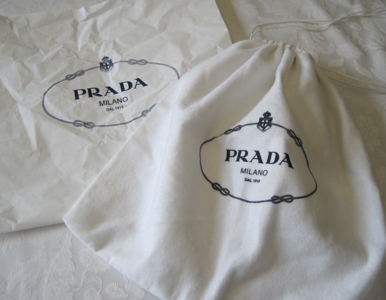 Whether you’re an Andi, Miranda or Emily, everyone can agree that Prada is an iconic fashion powerhouse that features oneofakind runway pieces, cultlike shoes and exquisitely crafted handbags LePrix loves Pradaespecially when it’s already been loved. Authentic Prada dust bag 195x 165 inches Prada dust bag Condition is "New with tags" Shipped with USPS Priority Mail. I was just wondering what colour/material is your Prada dust bag Mine is a black, thick satin kind of material with leather strings, but I've seen the white linen/cotton material too I also wonder if it varies depending on the store or the model of the bag Mine is a BN2274 Saffiano Lux Double Zip Thanks!.