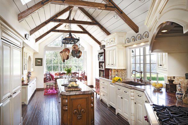 A French country kitchen island will call for cabinets made from a rustic wood and, perhaps, stained a barn red or light antique green Top the woodwork off with a white counter or butcher block surface to complete the look These French kitchen islands also typically work well with an extra punch of colorful tile embedded in the countertop or. Source customkitchensincnet French country kitchen style is among the two sub vintage models other than the Tuscan kitchen concept A high ceiling becomes a clear aspect for a French country kitchen that is often found in that kitchen model in rural areas in the small provinces of the country. French countrystyle kitchens can be rich and bright with colors like gold, deep red and olive, or neutral with granite countertops, furniturelike cabinetry and wood floors Browse pictures of French country kitchens Keep in mind Price and stock could change after publish date, and we may make money from these links.