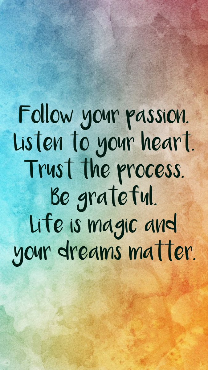 Follow Your Passion Listen To Your Heart Trust The Process Be Grateful Life Is Magical And Your Dreams Matter Inspire Me Today
