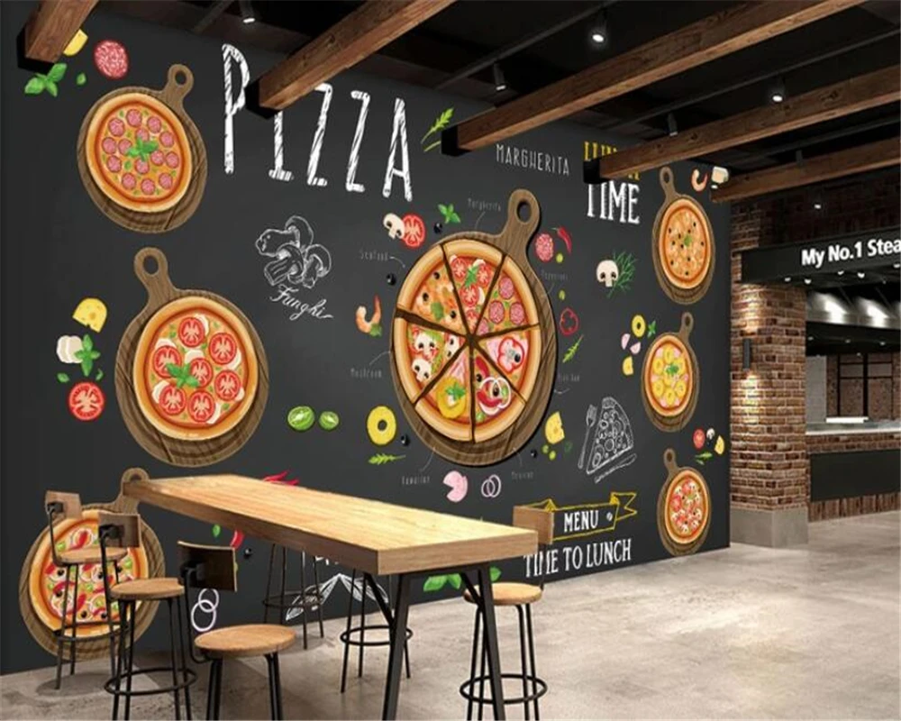 Beibehang Papier Peint Dessin Anime Personnalise Dessine A La Main Pizza Delicieuse Photo De Cafe Restaurant Fast Food 3d Papier Peint Aliexpress