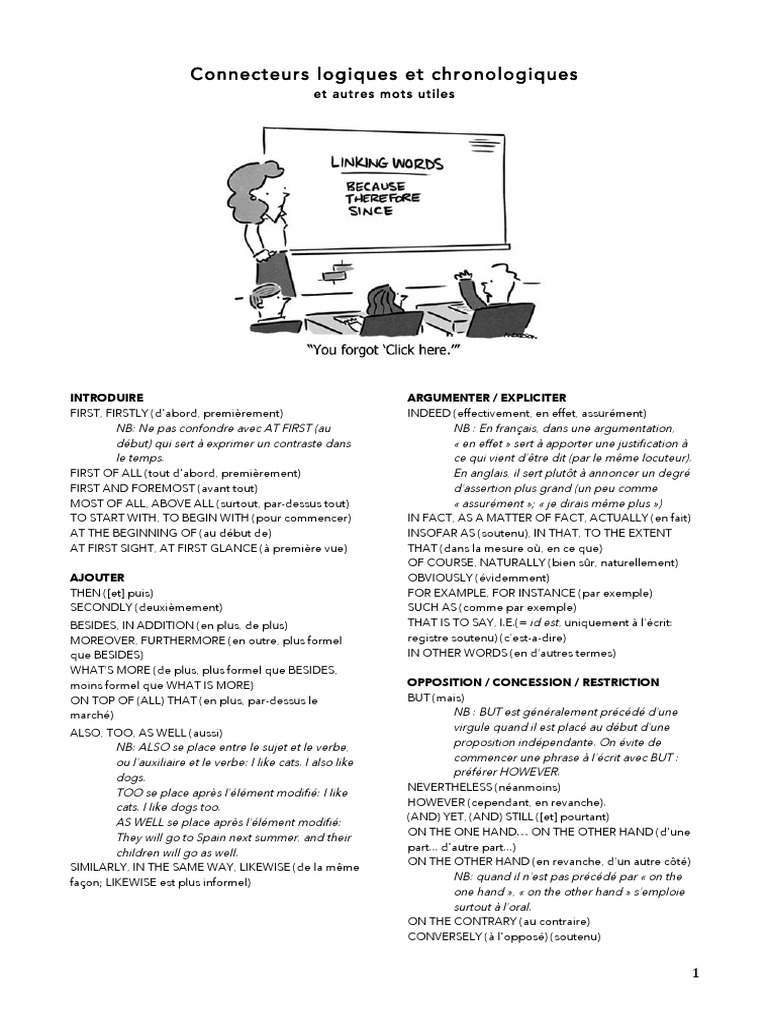 Connecteurs Logiques Et Mots De Liaison Anglais
