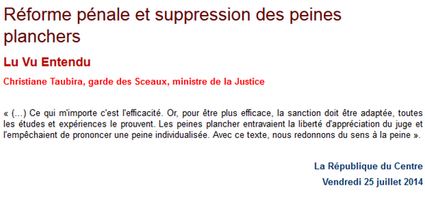 Ministere De La Justice Les Peines Plancher Entravaient La Liberte D Appreciation Du Juge Chtaubira Via Larep Fr Reformepenale Http T Co Sohkumgujs