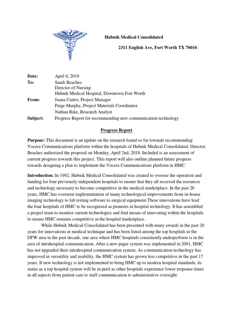 Progress Report Health Insurance Portability And Accountability Act Hospital